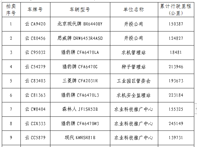 (一)拍賣車輛所有權(quán),詳見下表: